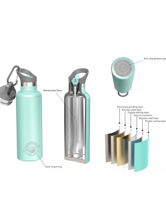 BOTELLA CON PAJITA DE ACERO INOX VERDE 500ml