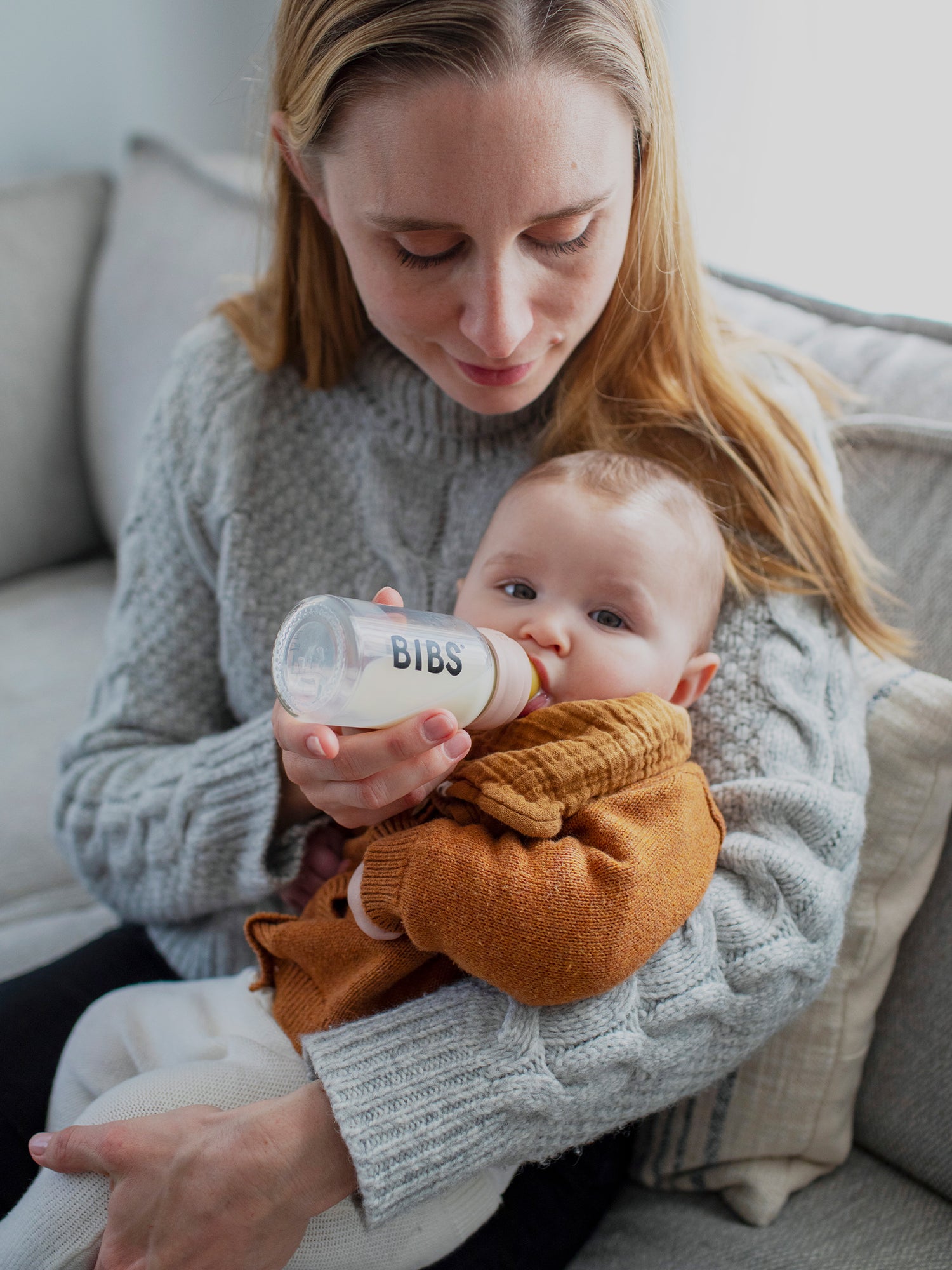 The teat has been specially developed to match the teat on our popular BIBS Color soother, which promotes the correct sucking technique for successful breastfeeding, to avoid confusion if you are breastfeeding and bottle feeding.