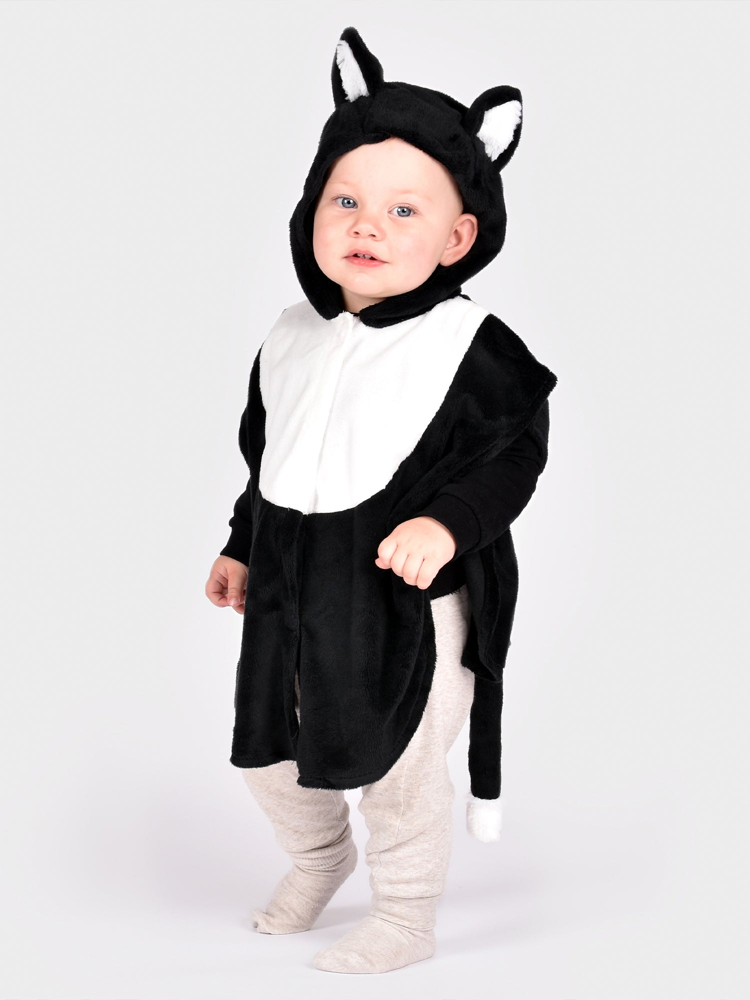 Cat cape costume with hood. With ears and tail. With velcro closure at the front.