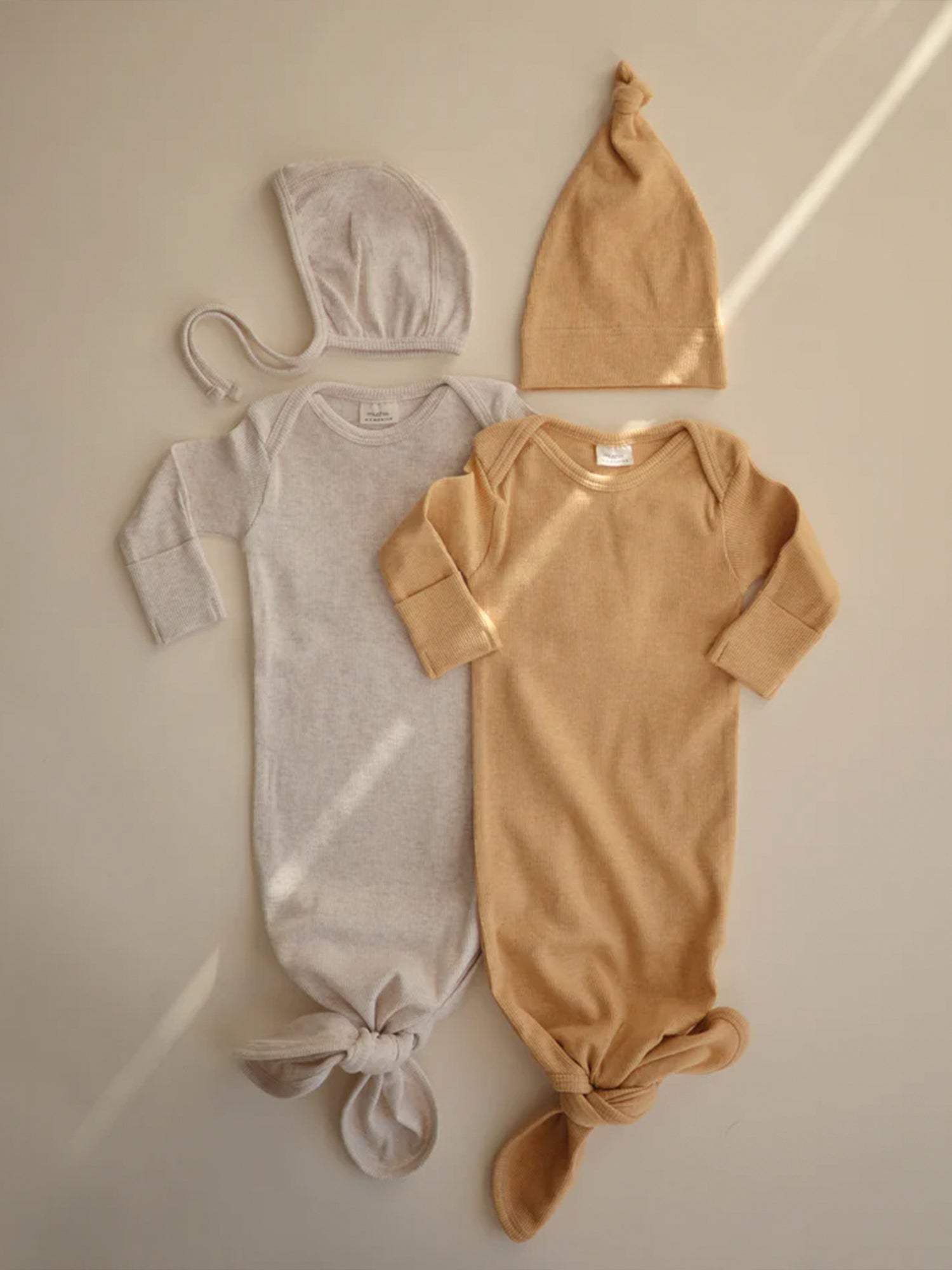 • GORRO CON NUDO ALGODÓN ORGÁNICO MUSTARD Mushie KIDSME