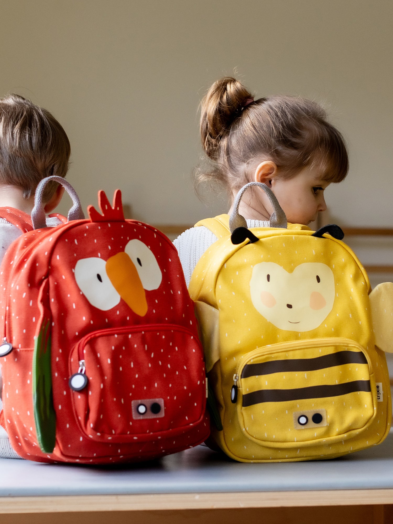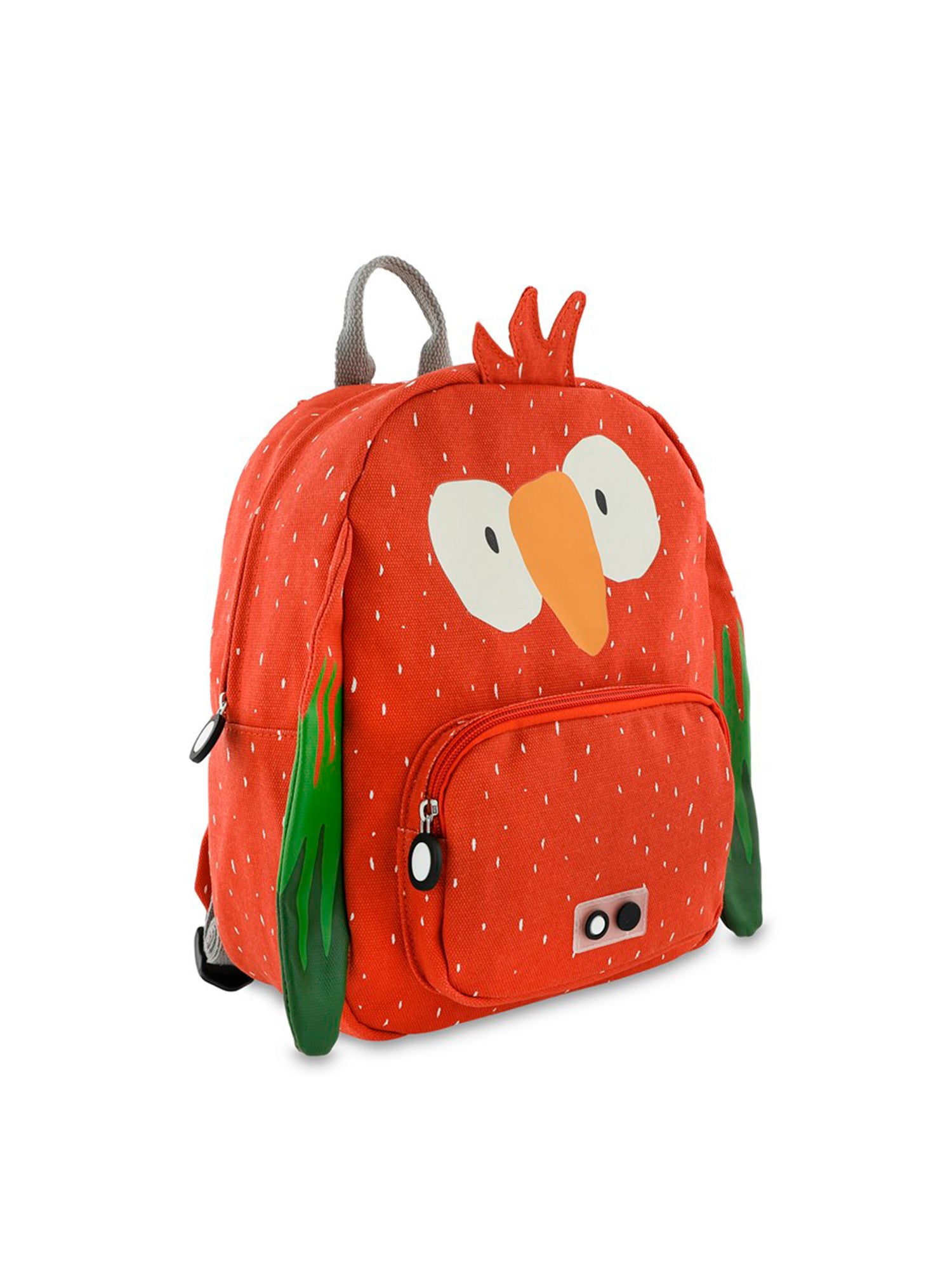 Backpack with a parrot face and cute wings and crest. Perfect for school, kindergarten or for going on a trip.