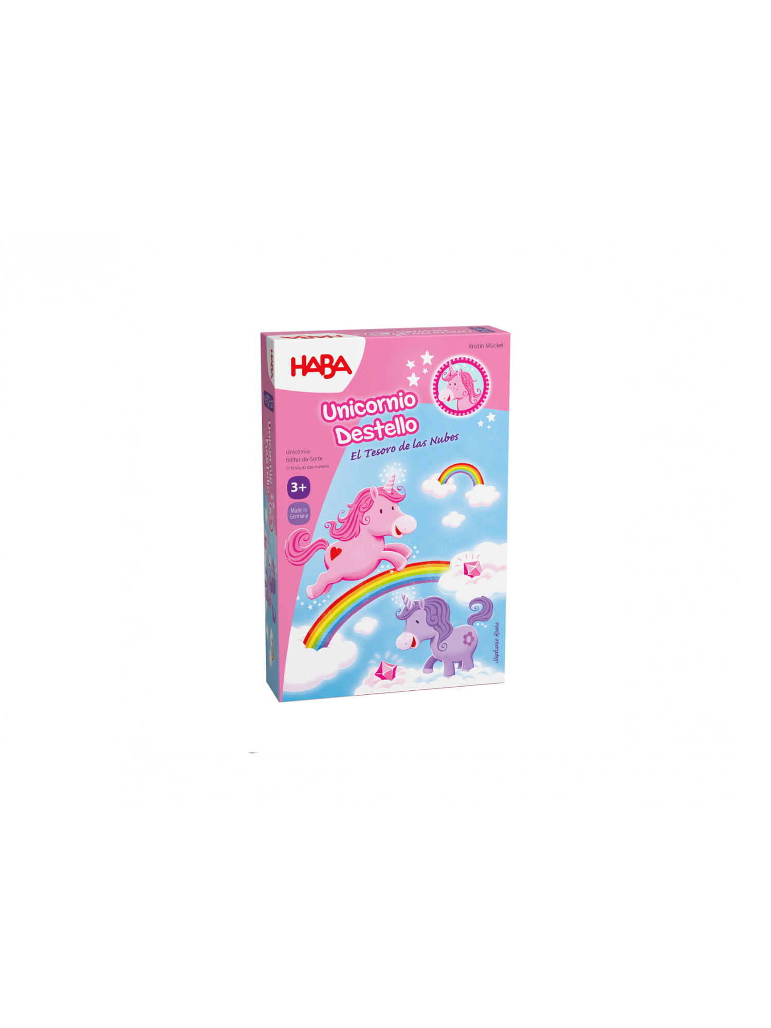Encantador juego de recorrido en el que los unicornios deben recorrer el país de las nubes en busca de cristales. Con la ayuda de los dados avanzan por el tablero o recogen cristales, y quien alcance primero la meta logra 4 cristales adicionales.