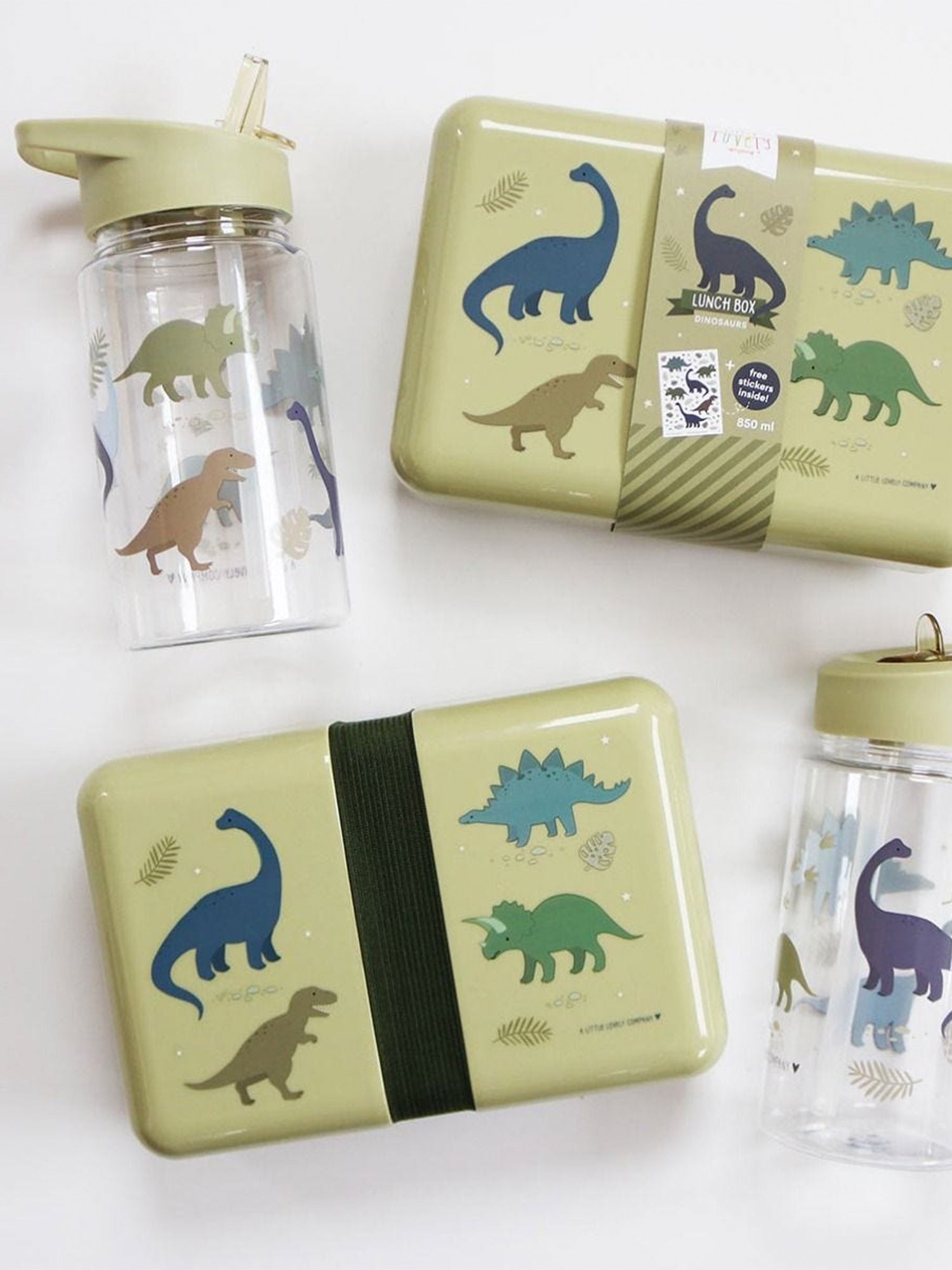 Esta botella de bebida Dinosaurios de A Little Lovely Company tiene un práctico pico y una pajita que hace que derramar sea cosa del pasado.