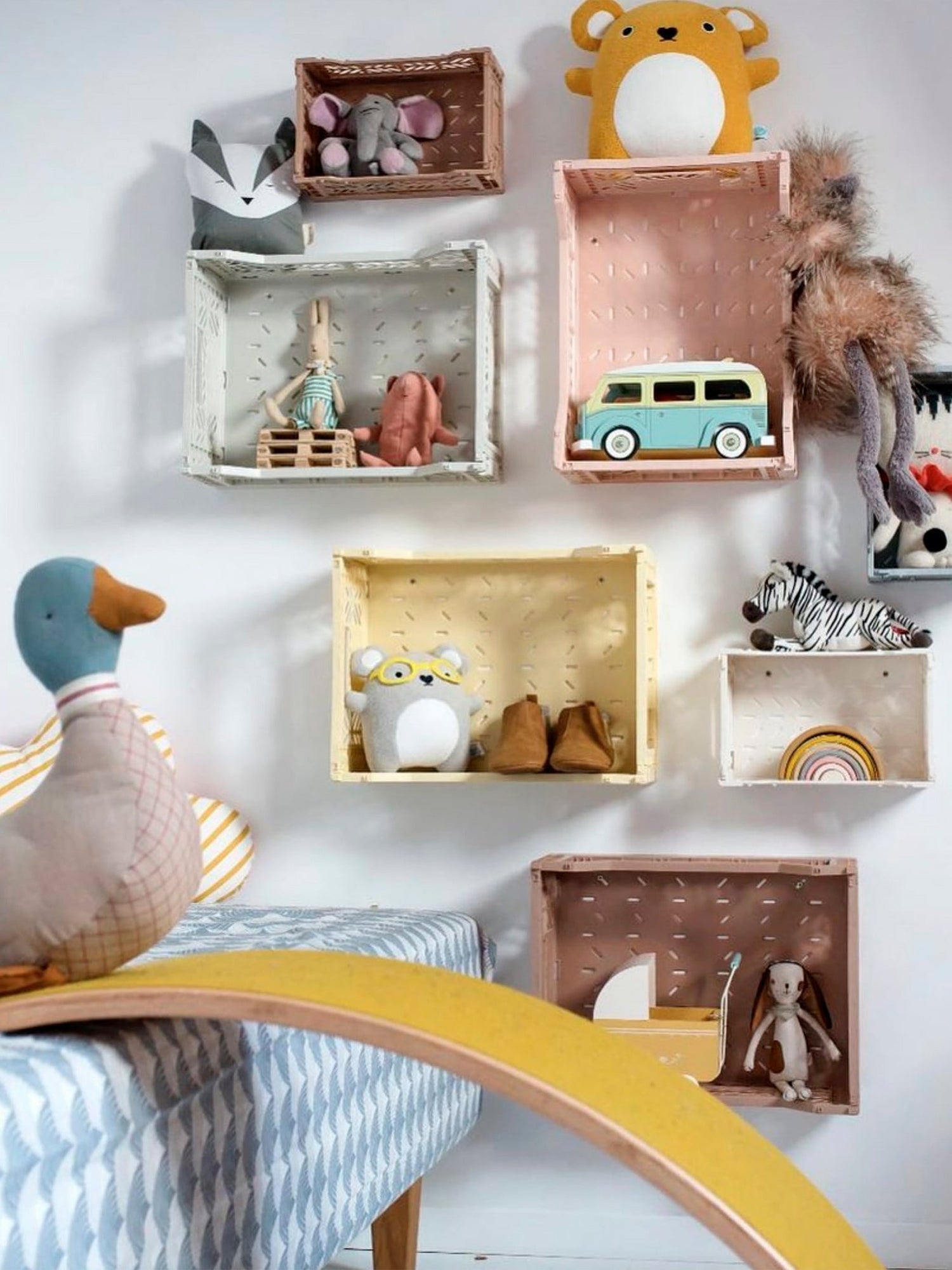 Su primer producto son estas preciosas cajas organizadoras que nos recuerdan a las de la fruta y las verduras de los supermercados, pero en colores ideales para poder decorar.