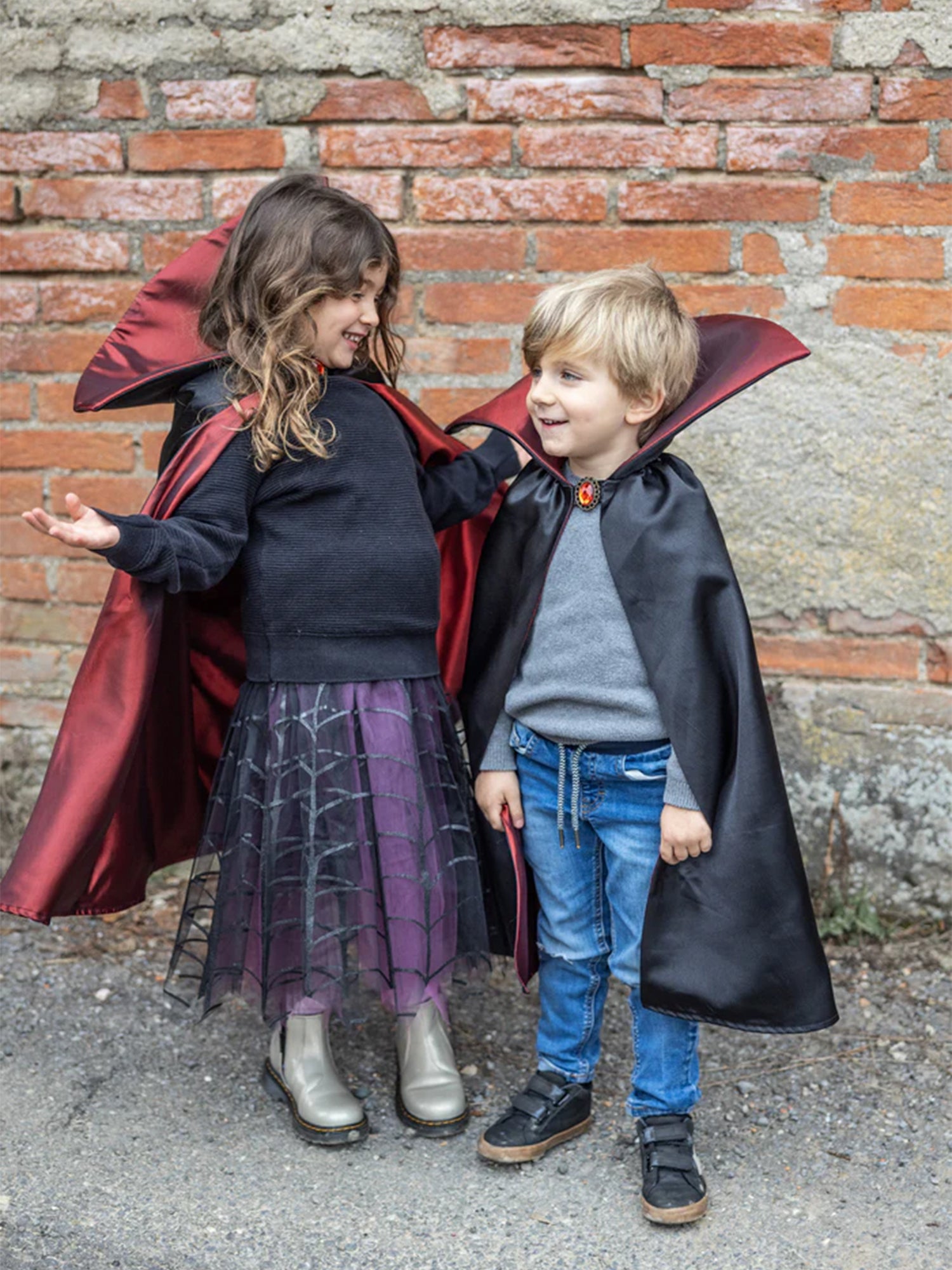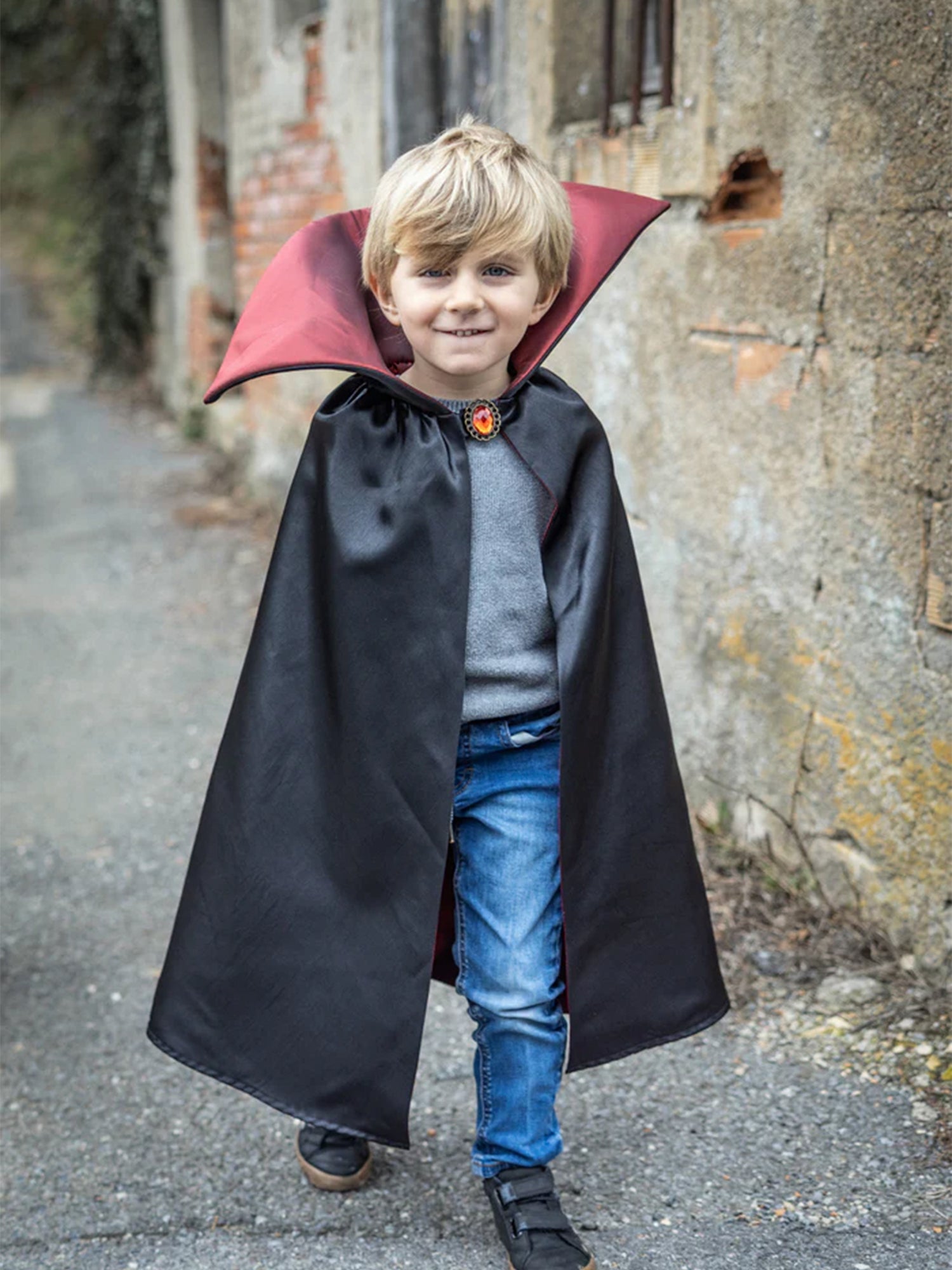 Con su distintivo cuello de vampiro, tu hij@ se transformará al instante en una criatura de la noche. El cierre de velcro, adornado con una cautivadora gema roja, añade un toque extra de glamour y garantiza un ajuste seguro para horas de juego imaginativo. Ya sea que merodeen entre las sombras o encanten a víctimas desprevenidas, esta capa los envolverá en oscuridad y encanto.