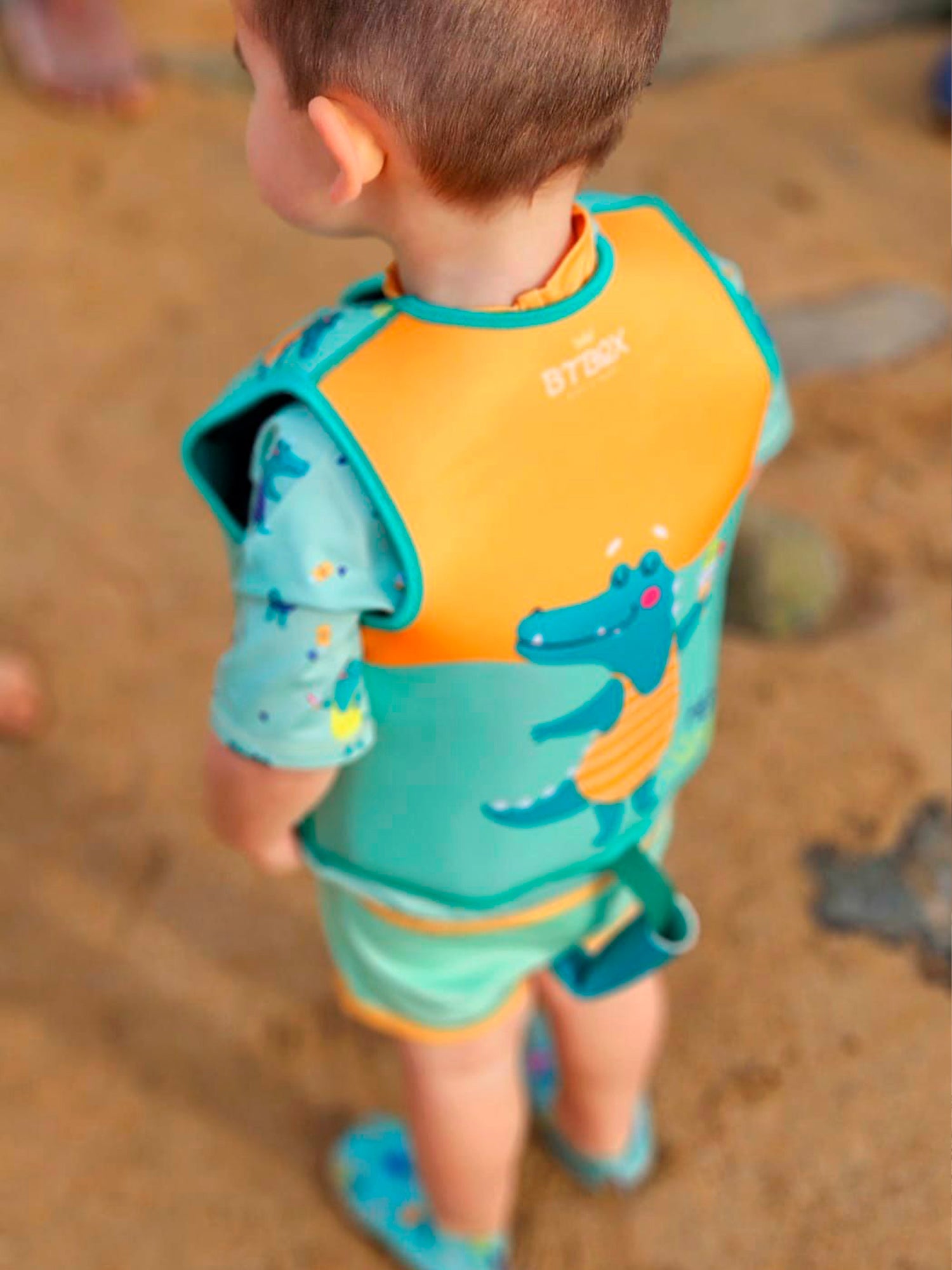 El chaleco flotador de BTBOX BEBES Peces está fabricado en neopreno de 5mm muy agradable al tacto y con unas costuras que no molestan ni dañan la piel del niño/a.