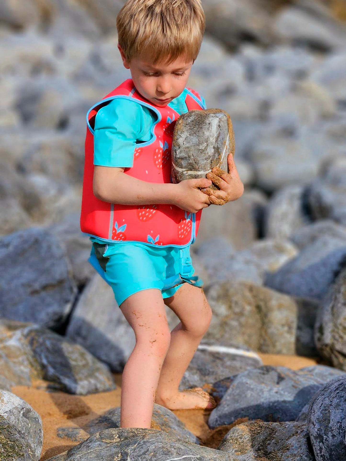 El chaleco flotador de BTBOX BEBES Strawberries está fabricado en neopreno de 5mm muy agradable al tacto y con unas costuras que no molestan ni dañan la piel del niño/a.
