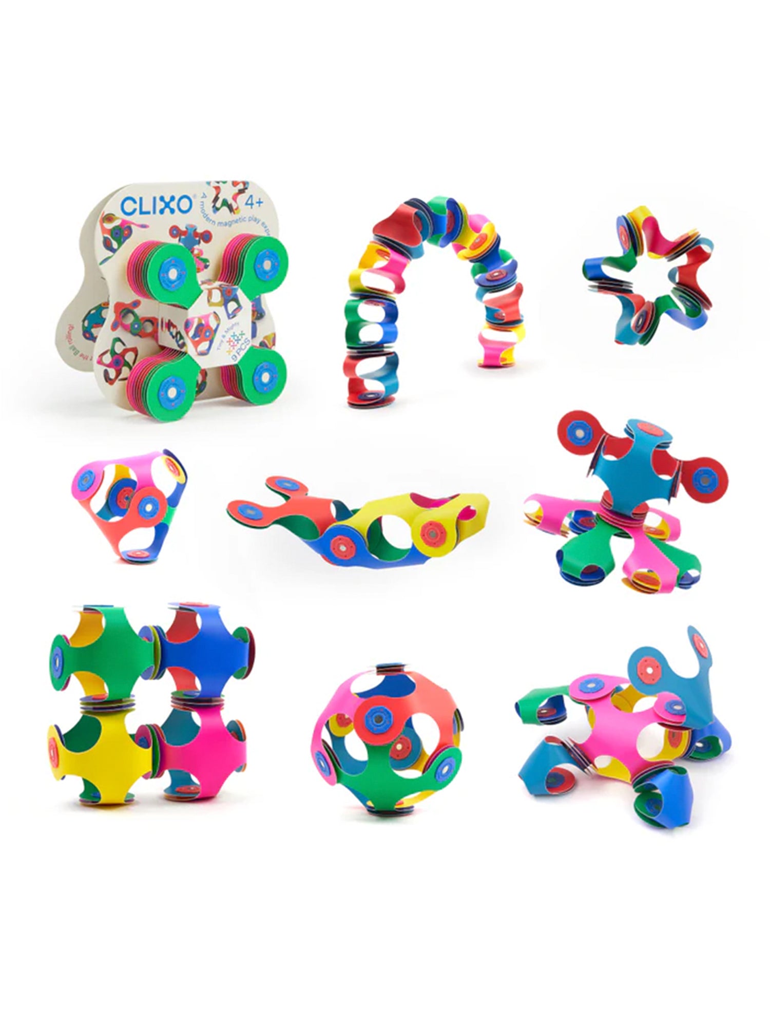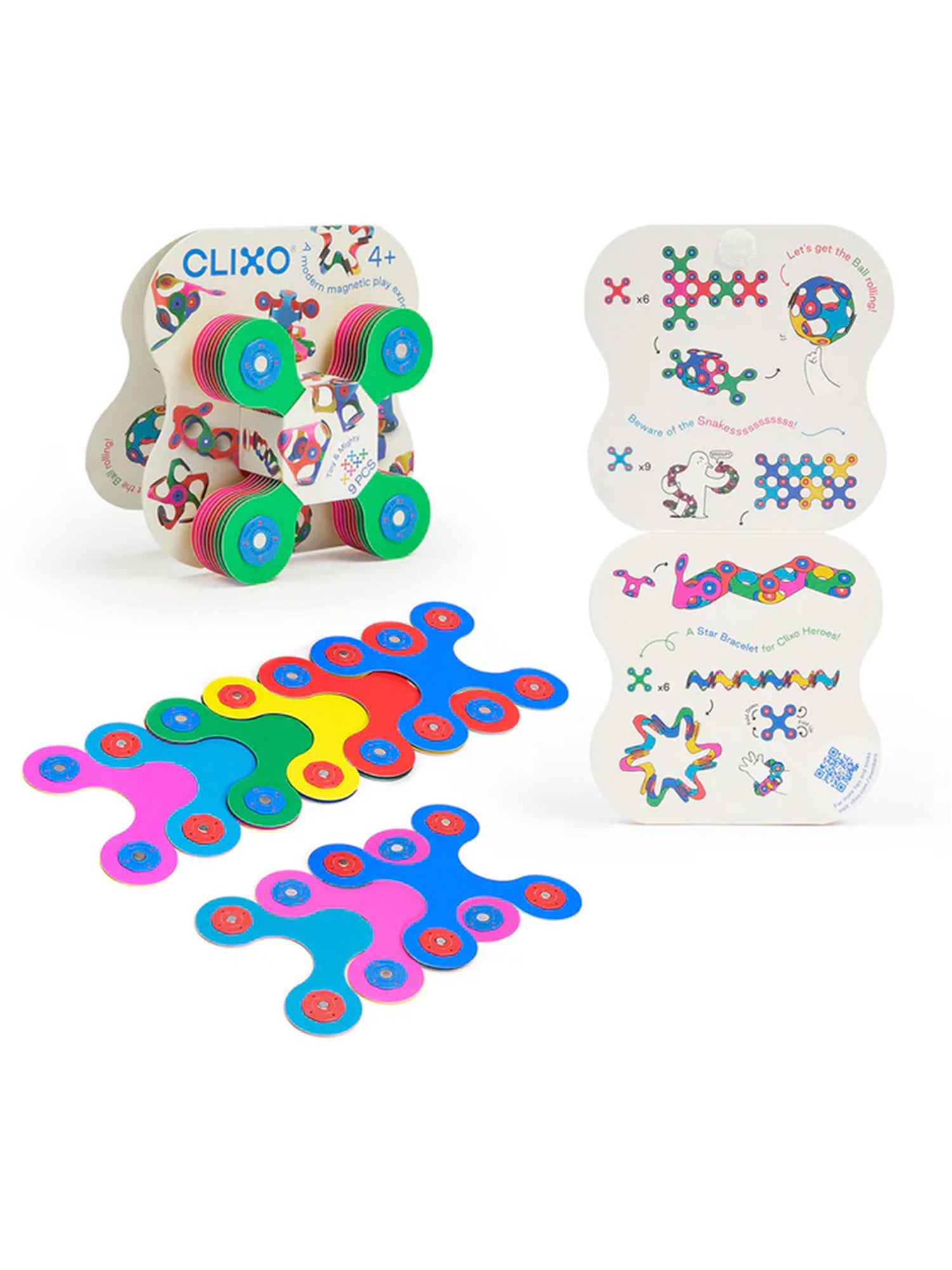 Estas 9 piezas de nuestra característica forma Quad pueden realizar numerosas creaciones inteligentes. Ya sea que rompas una serpiente, hagas clic en una corona, hagas rodar una bola o apiles las formas, ¡en este maravilloso paquete de bolsillo encontrarás un mundo de descubrimientos divertidos!