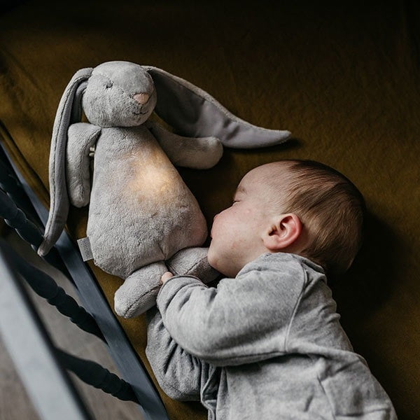 Moonie siempre se silencia después de 30 minutos y automáticamente entra en modo de espera de 3 horas. El llanto del bebé activa el último zumbido seleccionado durante otros 30 minutos y luego el ciclo se repite. El Smart Cry Detector también se puede encender directamente sin reproducir el ruido.