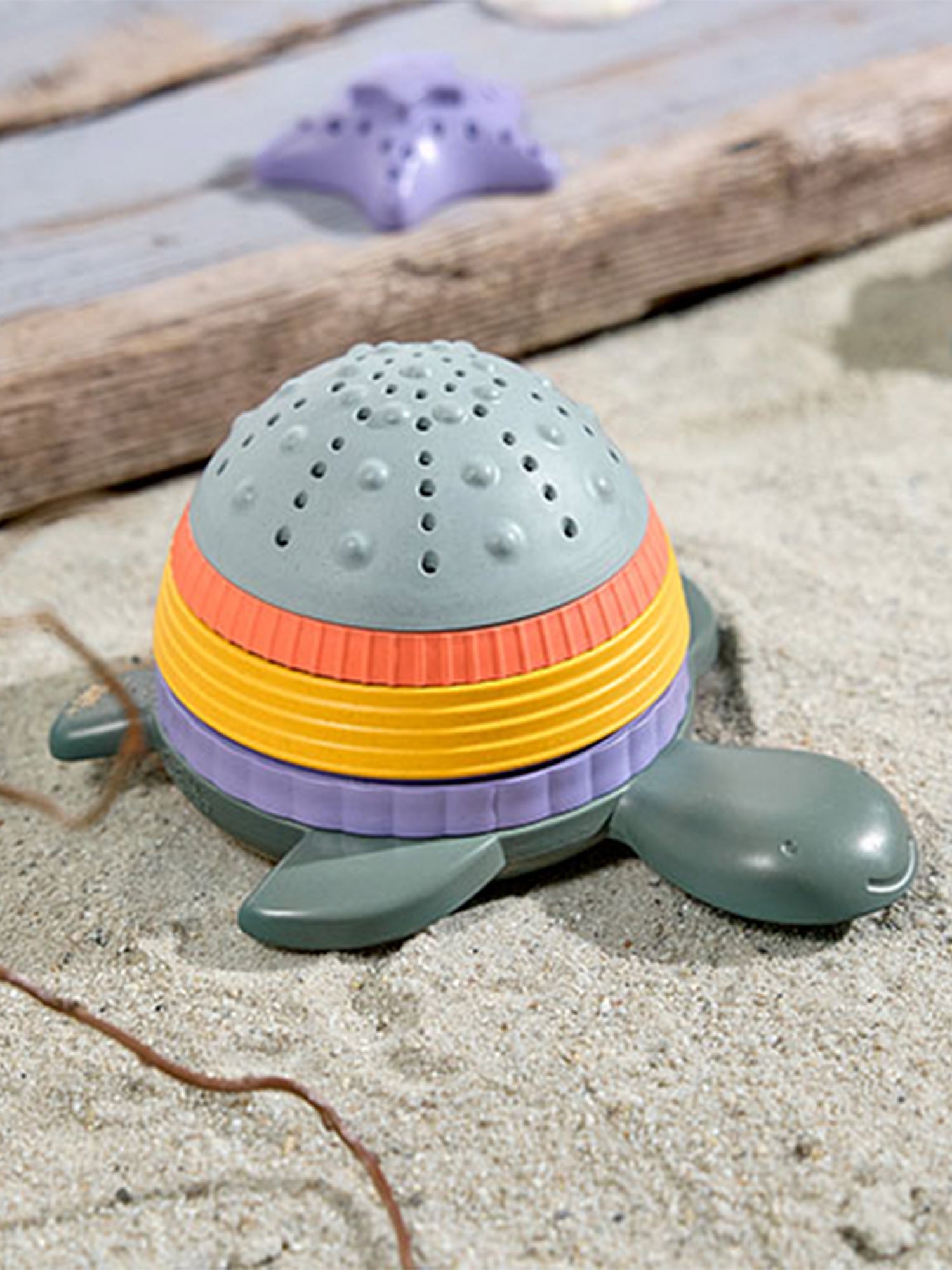 Jugar en la arena y el agua es aún más divertido con el juguete apilable LÄSSIG, ganador de un premio al juguete más innovador.