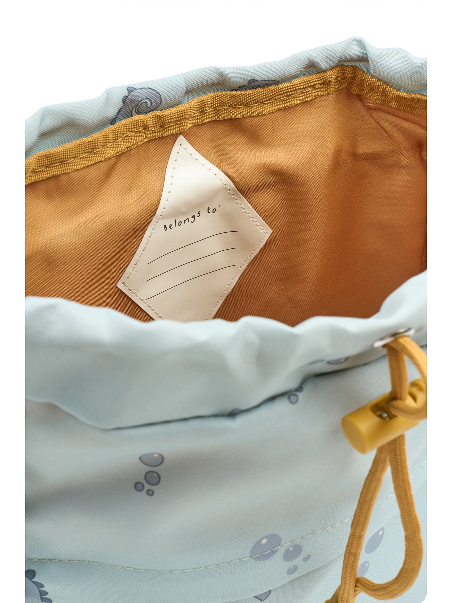 La mochila de Fabelab Under the Sea es ideal para pequeños viajes y aventuras. La mochila tiene un bolsillo frontal con cremallera para artículos más pequeños y se cierra fácilmente con un cordón y cierre de hebilla con solapa frontal.