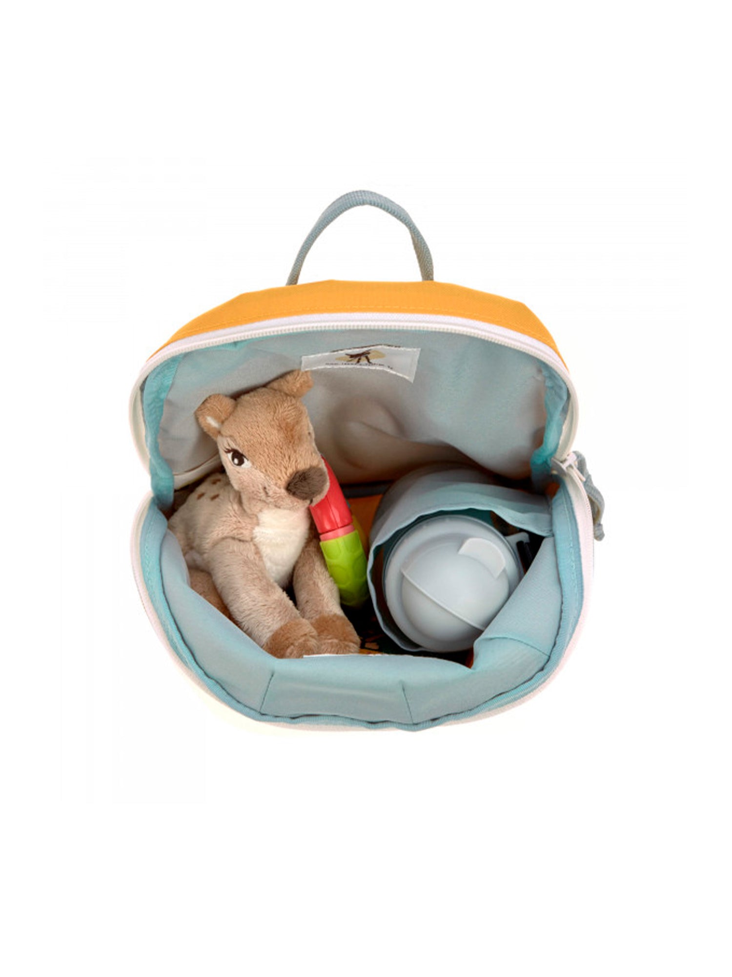 Además del diseño, la atención también se ha prestado a la practicidad: estas pequeñas mochilas ofrecen correas de hombro ajustables en altura con una correa para el pecho, un gran compartimento principal con soporte para botellas de bebidas y, por supuesto, una etiqueta con el nombre para evitar confusiones. El material exterior repelente al agua garantiza que sus cosas favoritas permanezcan secas bajo una lluvia ligera.