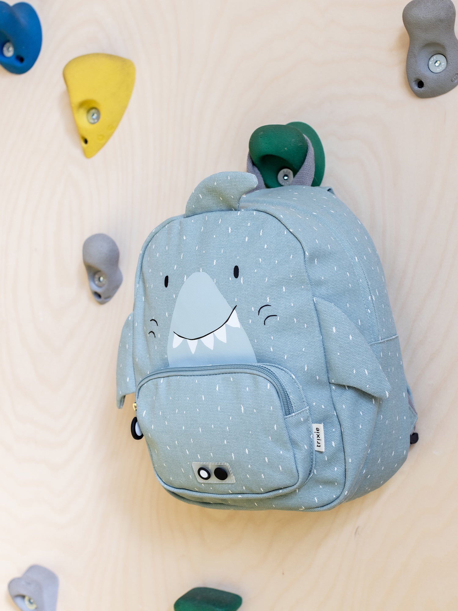 Mochila con cara de tiburón y bonitas aletas. Perfecta para el colegio, la guarderia o para ir de excursión.