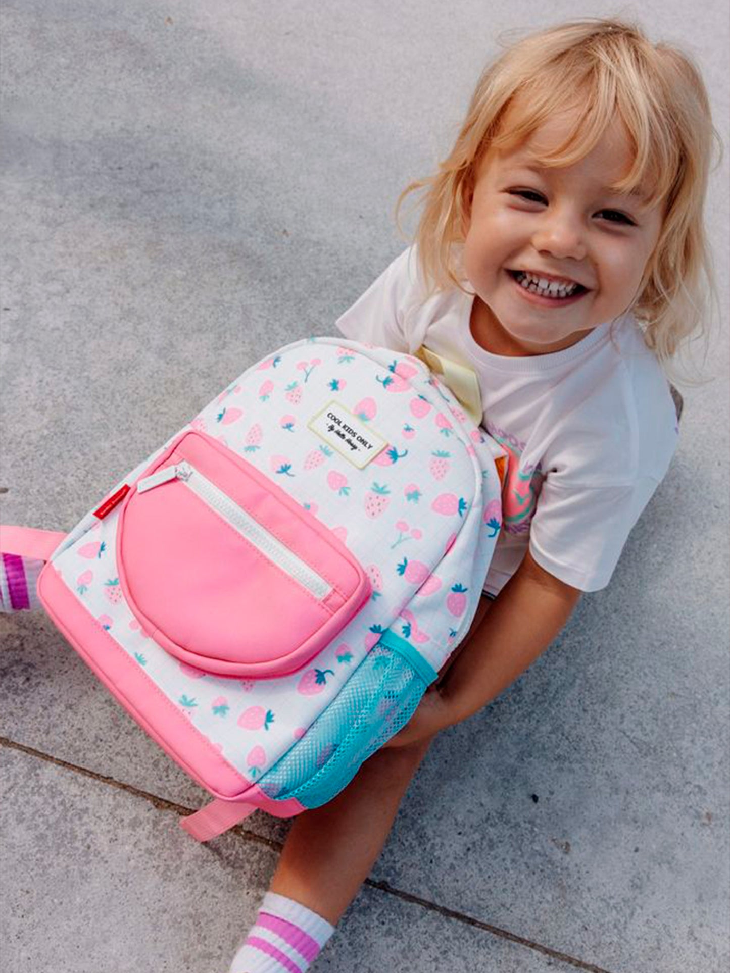 Mochila Berry Bloom Hello Hossy para la escuela infantil y el colegio. Ideal para niños y niñas de 2 años a 7 años. Son prácticas, ligeras cómodas y además está fabricada con poliester 100% reciclado, que la hace muy resistente.