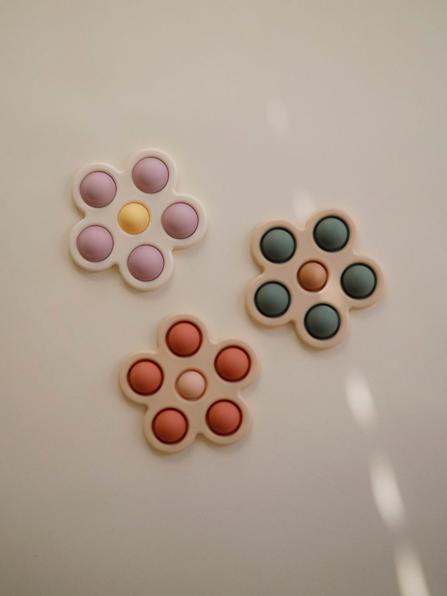 Hecho pensando en las manos pequeñas, nuestro juguete de prensa de flores fomenta la exploración sensorial y el desarrollo de habilidades motoras finas con su diseño simple y colores suaves. Con silicona de calidad alimentaria y un marco de plástico sin BPA, los niños aprenderán mientras presionan las burbujas y escuchan un suave estallido.