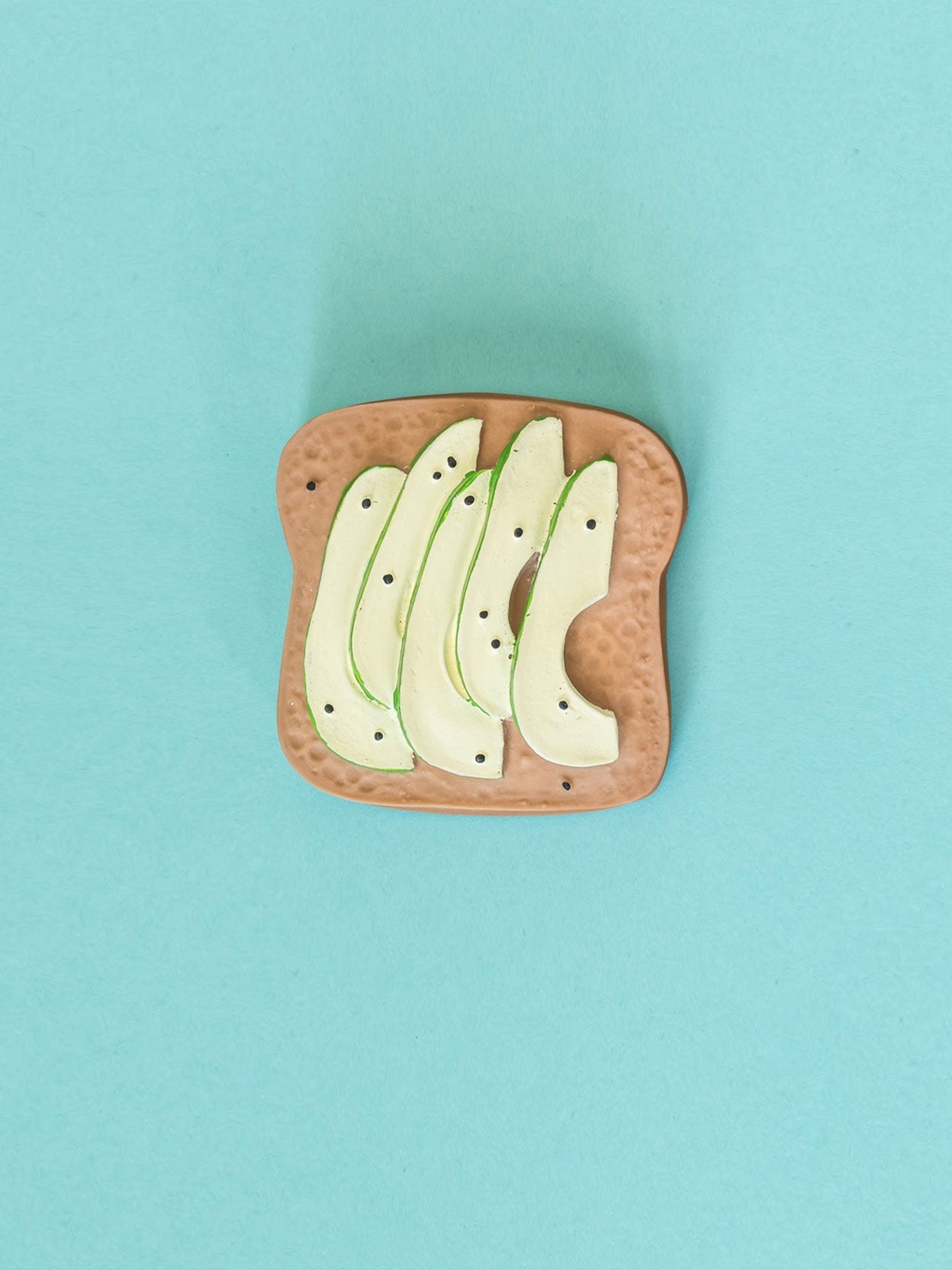 Original mordedor de en forma de tostada con aguacate ideal para introducir a los peques para un desayuno sano y nutritivo. Este mordedor duradero lo podrá usar como primer juguete en los primeros meses y despues como un divertido juguete para la cocinita. De material natural, perfecto para aliviar la salida de los primeros dientes. Elaborados con caucho natural de hevea y con tintes naturales, son la mejor opción para la boca de tu bebé.