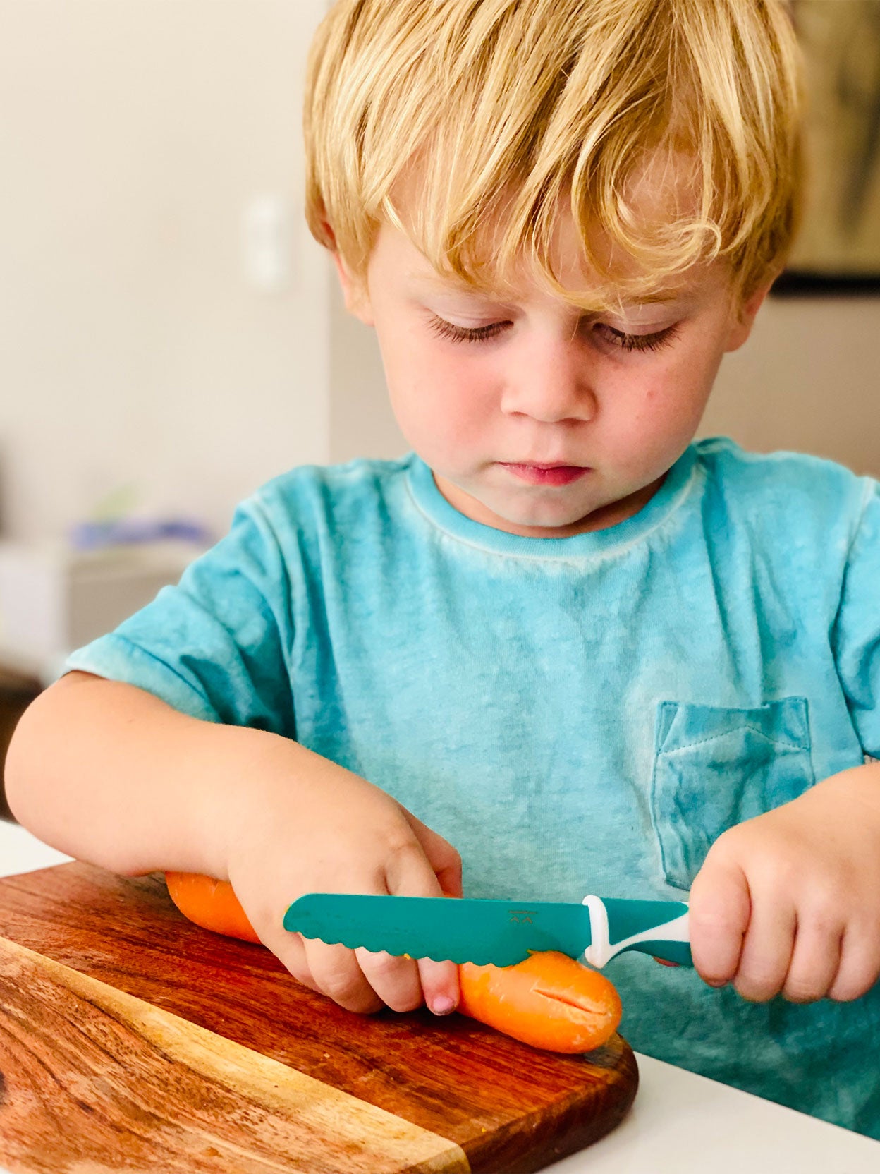 KiddiKutter es una marca australiana nacida con el objetivo de proporcionar cuchillos seguros a los niños para que estos puedan ayudar en la cocina o cortar su propia comida a la hora de sentarse en la mesa.