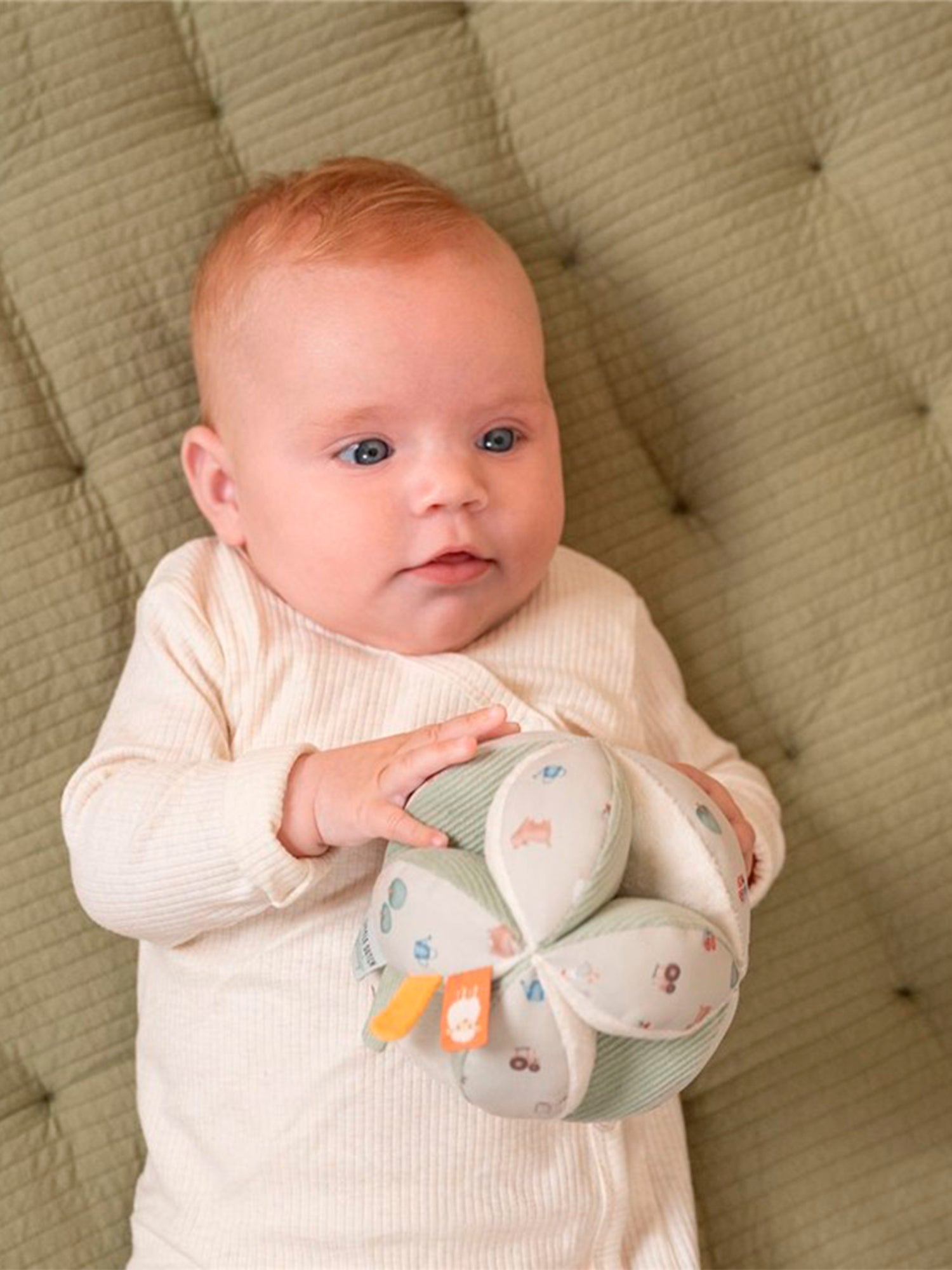 La Pelota Montessori es uno de los mejores juguetes para ofrecer a tu bebé ya que están fabricadas en algodón y son blanditas.