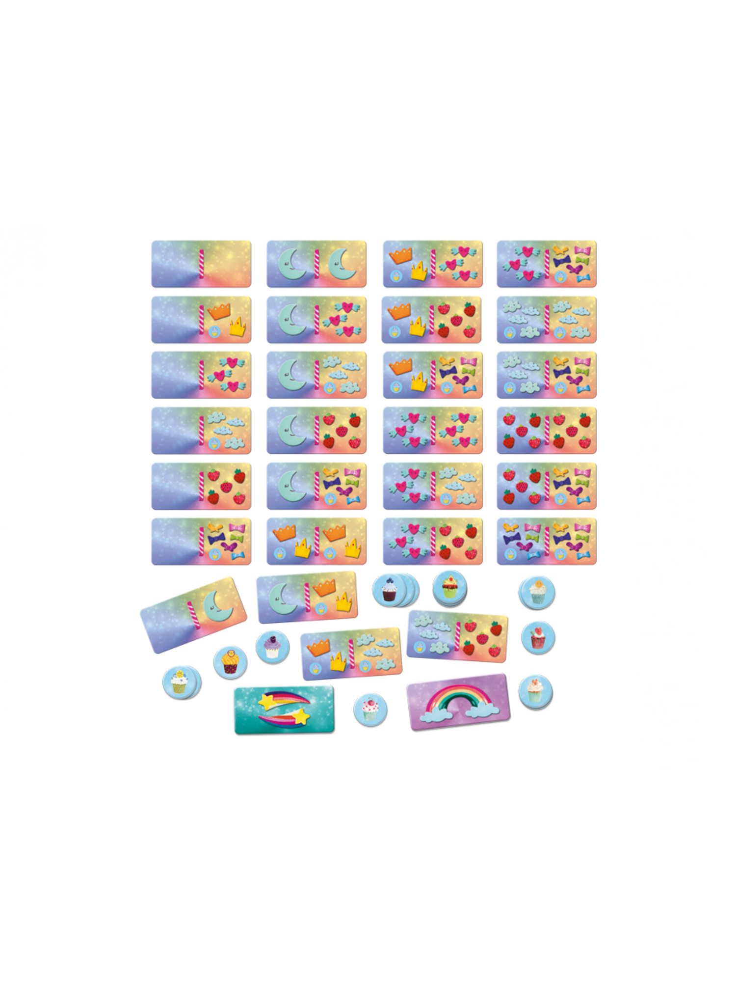 Une las tarjetas una tras otra, tratando de usarlas todas antes que los/as demás, y consigue el mayor número de fichas. Incluye tarjetas especiales que pueden cambiar el resultado de la partida.