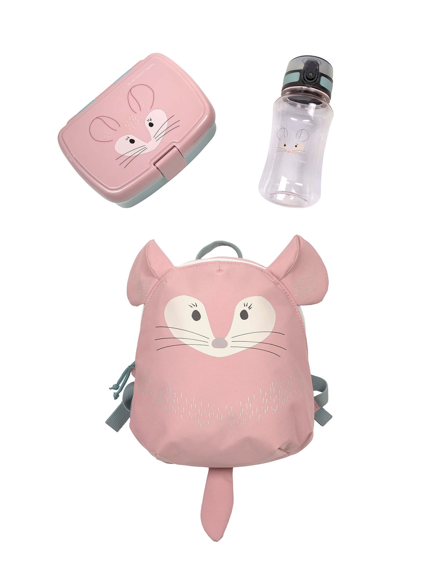 El biberón infantil a juego, irrompible, fabricado en 100 % tritán, tiene una tapa hermética con cierre de seguridad, de modo que permanece bien cerrado incluso en una mochila.
