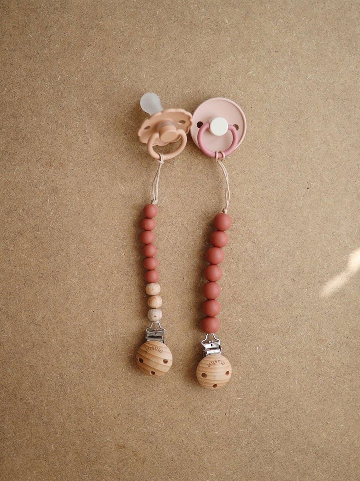 Los chupeteros de Mushie son nuestros favoritos y, por supuesto, de los bebés. Nuestros clips de chupetes vienen en colores únicos y elegantes, de inspiración vintage que recuerdan una simplicidad pacífica.