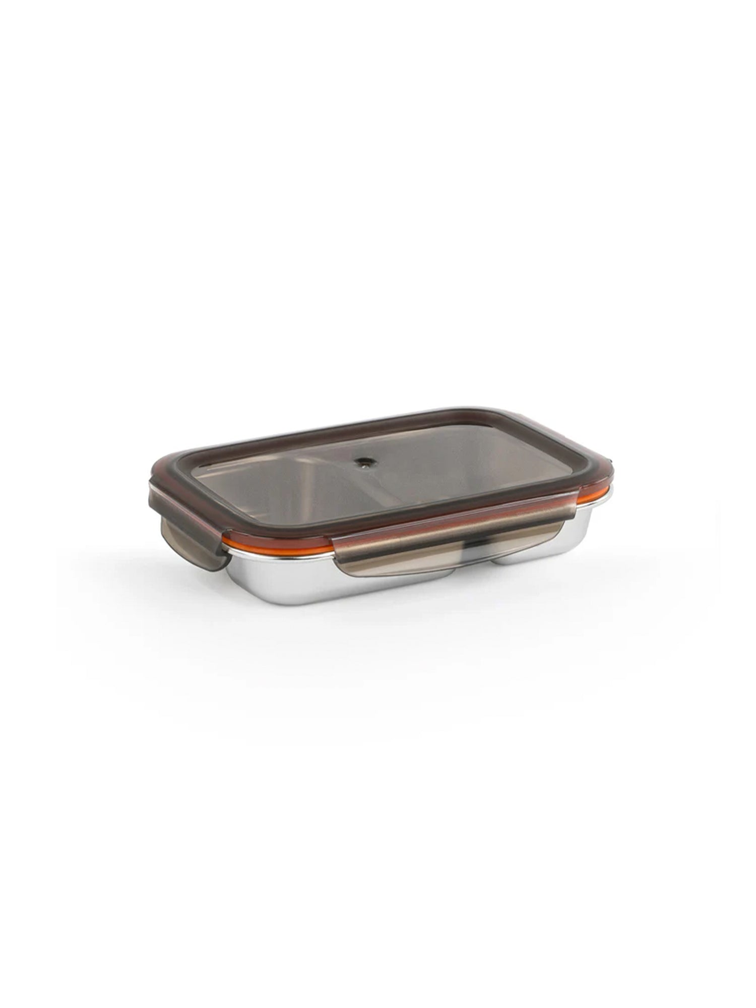 Nuevo tupper rectangular metálico de 2 compartimentos, fabricado con el innovador CROMOSTEEL.