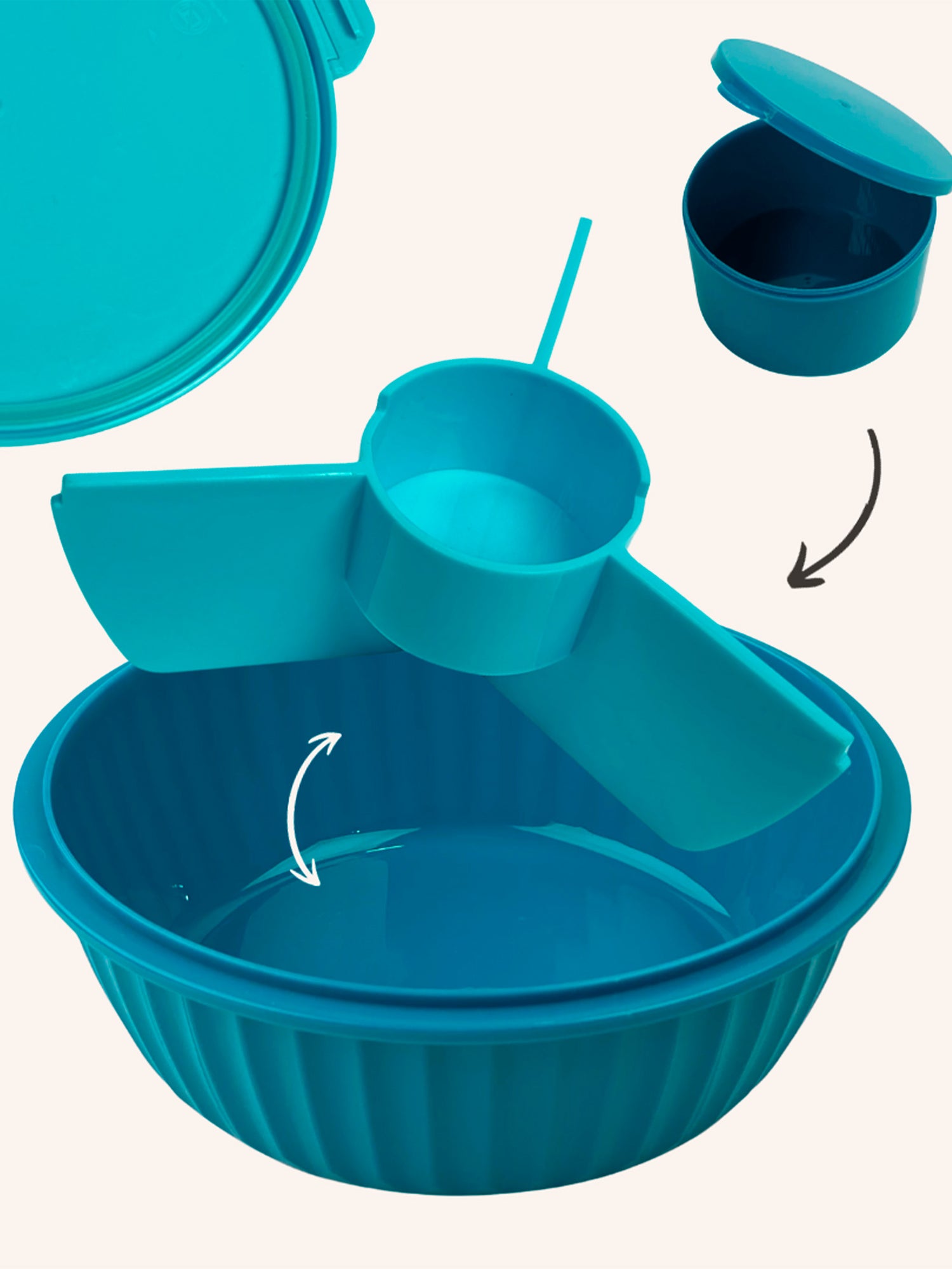 Combina un espacio para verdura o ensalada, otro para pasta o arroz y otro para proteina y lleva tu comida saludable a cualquier lugar con este Poke Bowl a prueba de fugas gracias a sus 3 cierres y junta de silicona.