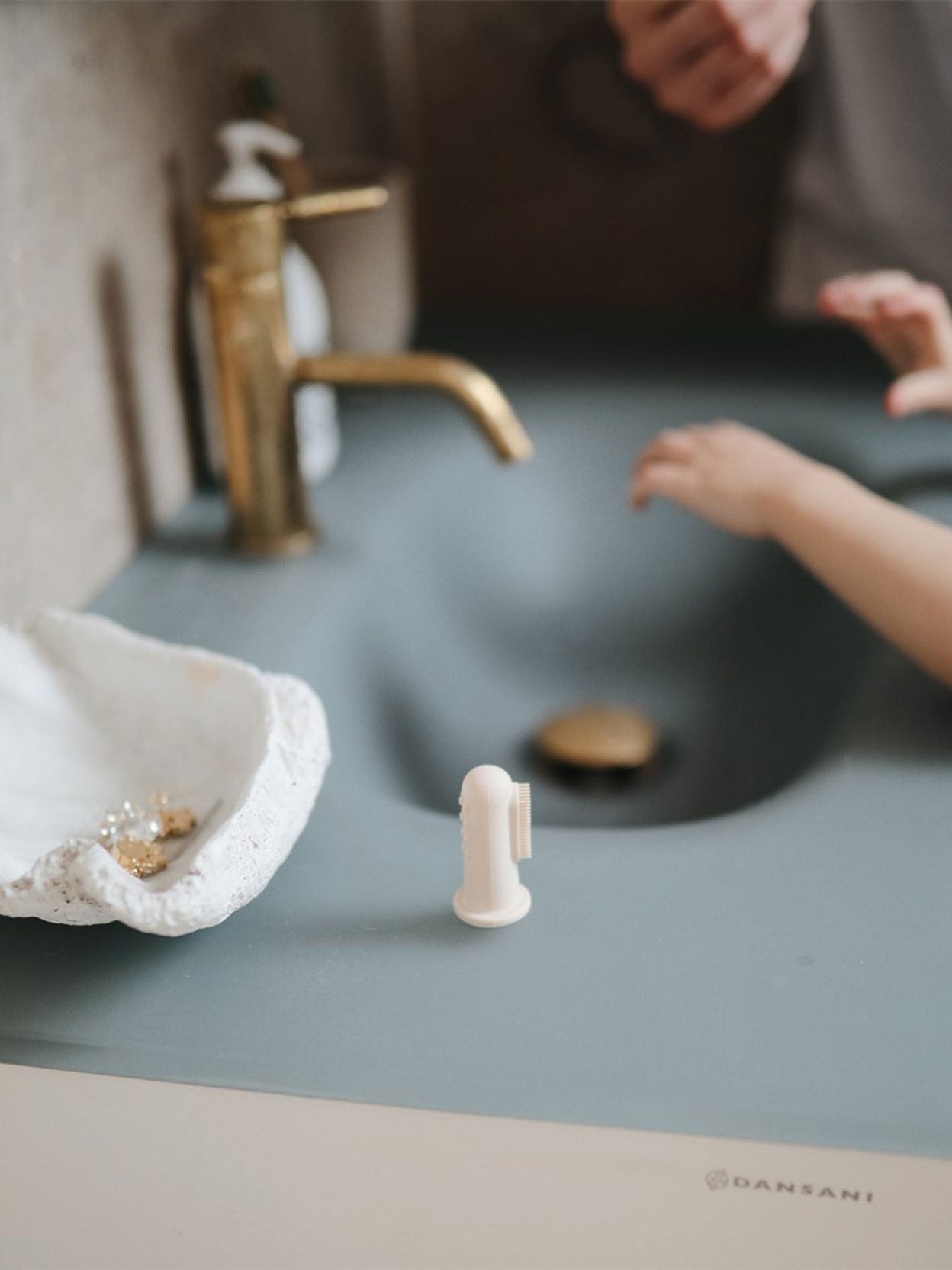 Comece a desenvolver bons hábitos de higiene dental com estas escovas de dentes de silicone da Mushie.