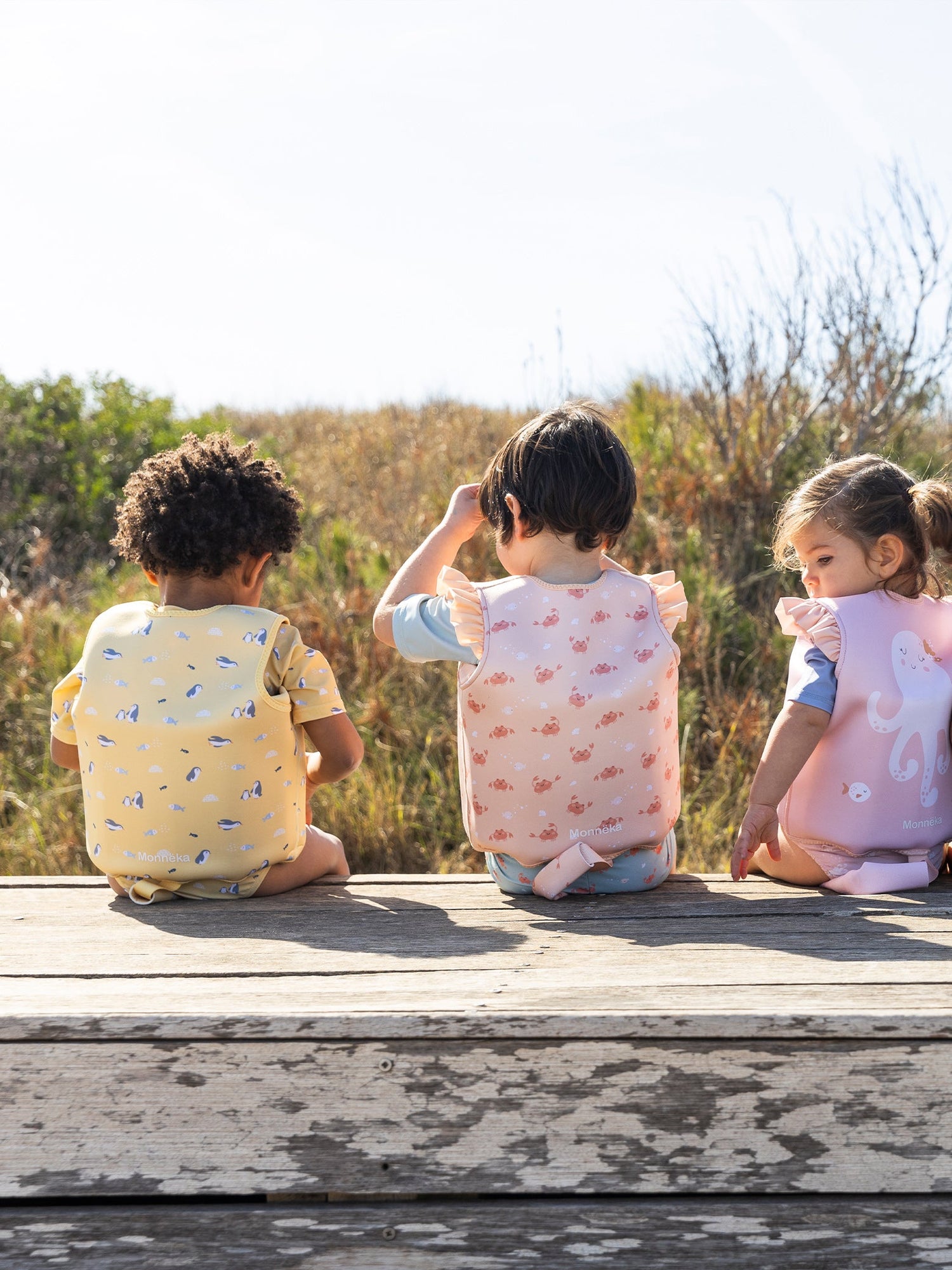 - ATENCIÓN: El uso de este bañador no sustituye jamás el uso de crema protectora y se debe de evitar la exposición solar del niño entre las horas en que el sol está en su punto más álgido