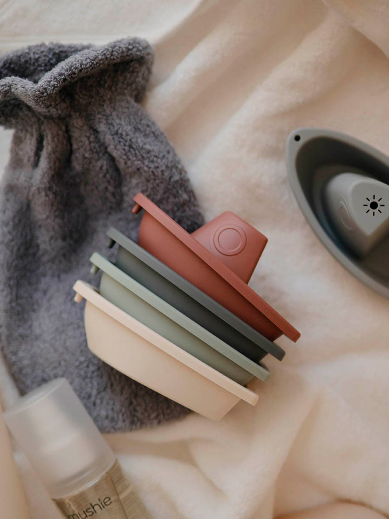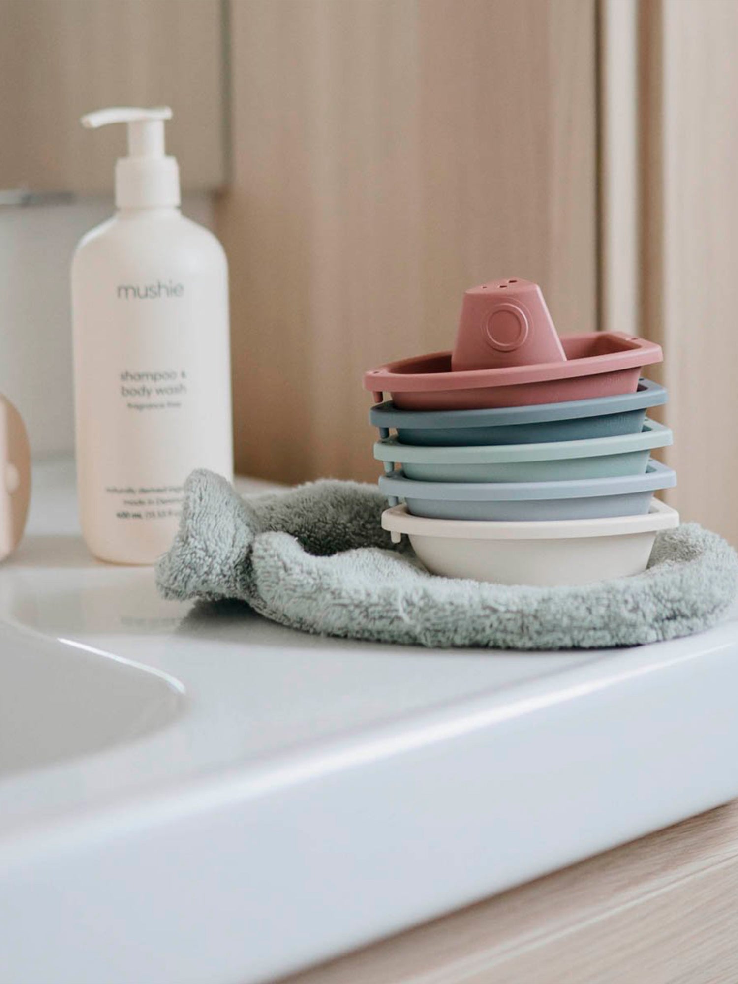 Mushie es una marca que diseña y fabrica en Dinamarca. Sus productos son sotenibles fabricados con materiales eco-concientes que duran mucho. De diseño minimalista Mushie es conocida por sus famosos porta chupetes de silicona, baberos de silicona o muselinas de algodón orgánico.