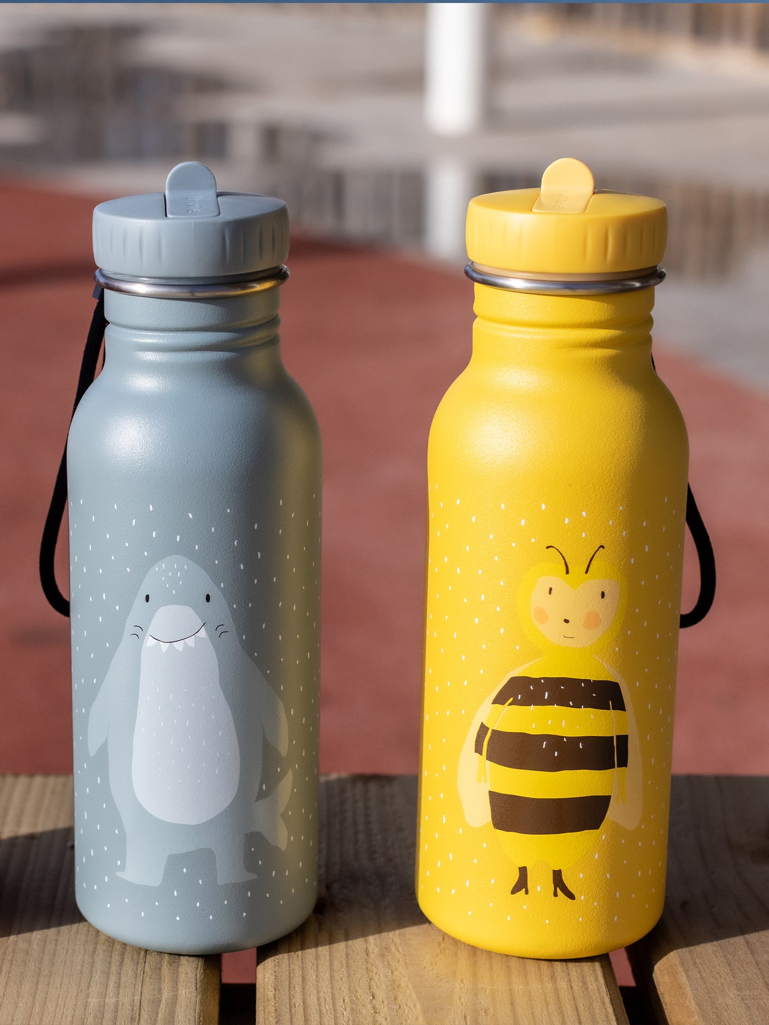 Botella de acero inoxidable Trixie Mrs. Bee. La botella más fácil de usar para lo niñ@s. Es muy fácil de usar, ya que sólo tienen que levantar la tapa estilo pitorro como si fuera una pajita. La botella de acero inoxidable trixie es una botella resistente y duradera perfecta para salir de excursión, a la playa o a la escuela.