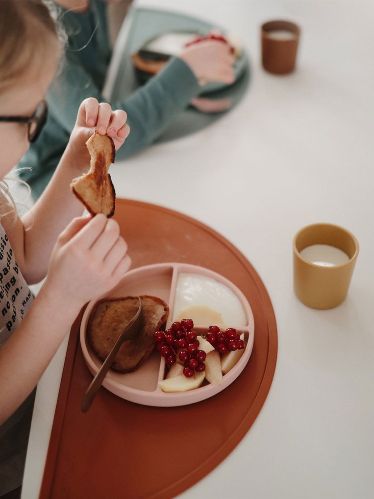 Este prato compartimentado de mushi de silicone possui uma ventosa que o mantém no lugar, minimizando derramamentos enquanto seu filho aprende a comer sozinho. O material de silicone de grau alimentício permitirá que você aqueça os alimentos com segurança diretamente no recipiente. Perfeito para começar com o blw ou alimentação complementar, pois evitará as quedas do prato.