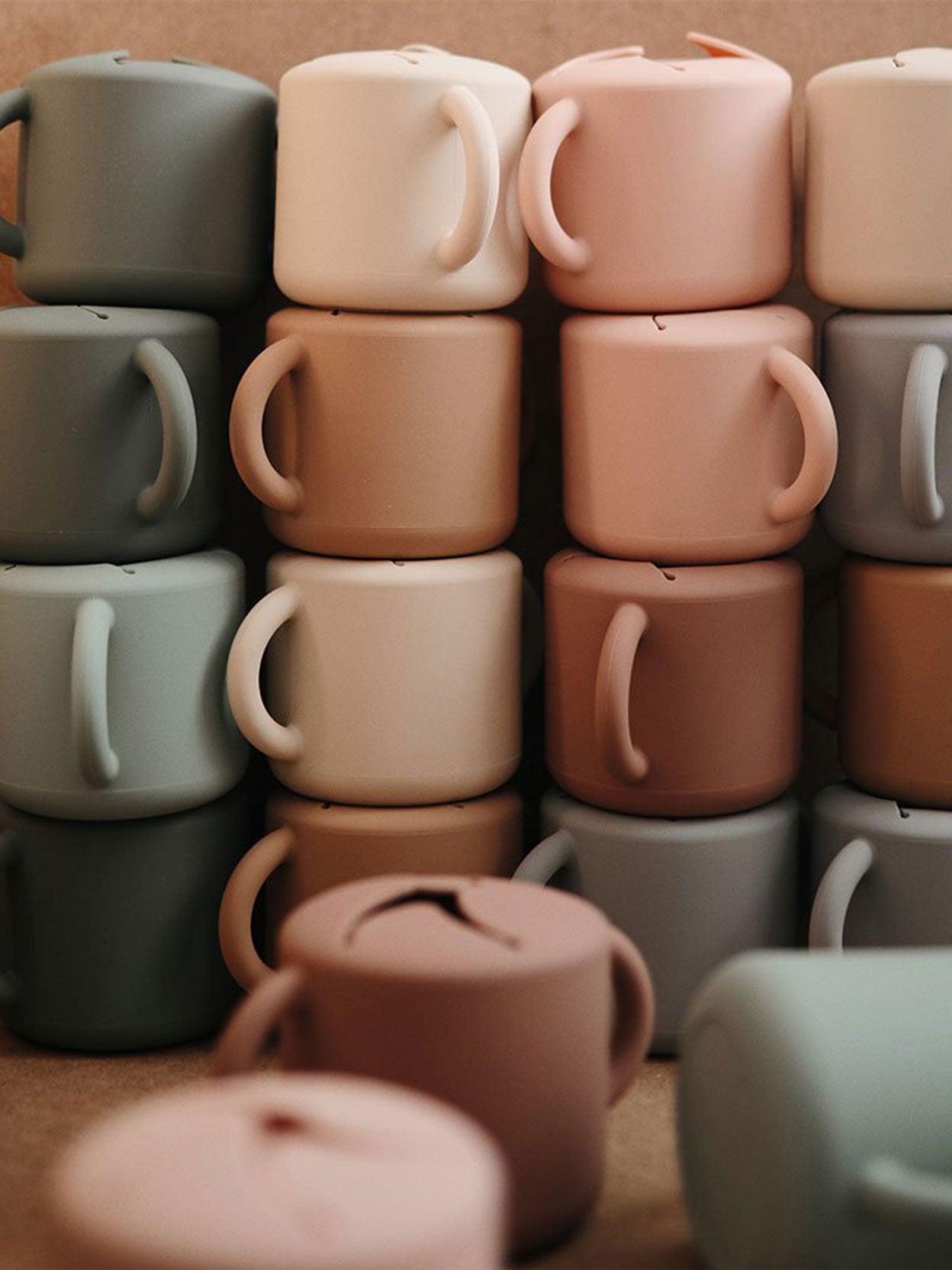 Este copo de lanche mushie é um item essencial para crianças em movimento.